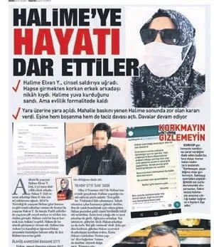Ankara'da yaşayan Halime Elvan Y. (34), 3 yıl önce dört yıllık erkek arkadaşı Hakan Y. (32) ve onun arkadaşı Okan D.'nin cinsel saldırısına uğradı. Olay 2 Temmuz 2017'de Halime'nin evinde gerçekleşti. Hapse girmekten korkan erkek arkadaşı nikâh kıydı. Halime yuva kurduğunu sandı. Ama evlilik formalitede kaldı. Yara üzerine yara açıldı. Mahalle baskısını yenen Halime sonunda zor olan kararı verdi. Eşine hem boşanma hem de taciz davası açtı. Çektiği acıların dinmesi için adalet arayan genç kadın 13 Ağustos'ta gazetemiz aracılığı ile kendisine hayatı dar edenlerin ceza çekmesini talep etti. Yapılan haber sonrası Halime hakkında şikâyette bulundular. Halime, "Sizinle yaptığım haberden sonra karşı taraf gidip beni şikayet etmiş asılsız haber yaptırdığım için ve onun itibarını zedelediğim için. Fakat savcılık yaptığım şeyin suç olmadığına karar verip takipsizlik vermiş" dedi.