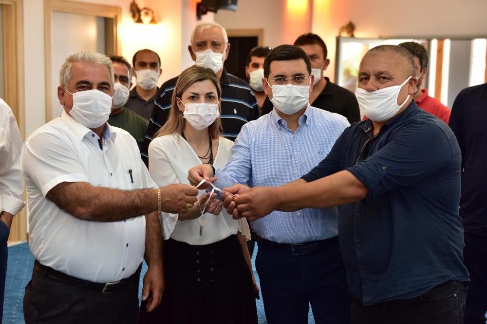 Tütüncü, daha sonra cemevinin anahtarını, Pir Sultan Abdal Kültür Derneği Altınova Şube Başkanı Adnan Arslan ile Antalya Tahtacıları Kültür, Eğitim, Yardımlaşma ve Dayanışma Derneği Başkanı Özgür Çamlıdağ’a teslim etti.