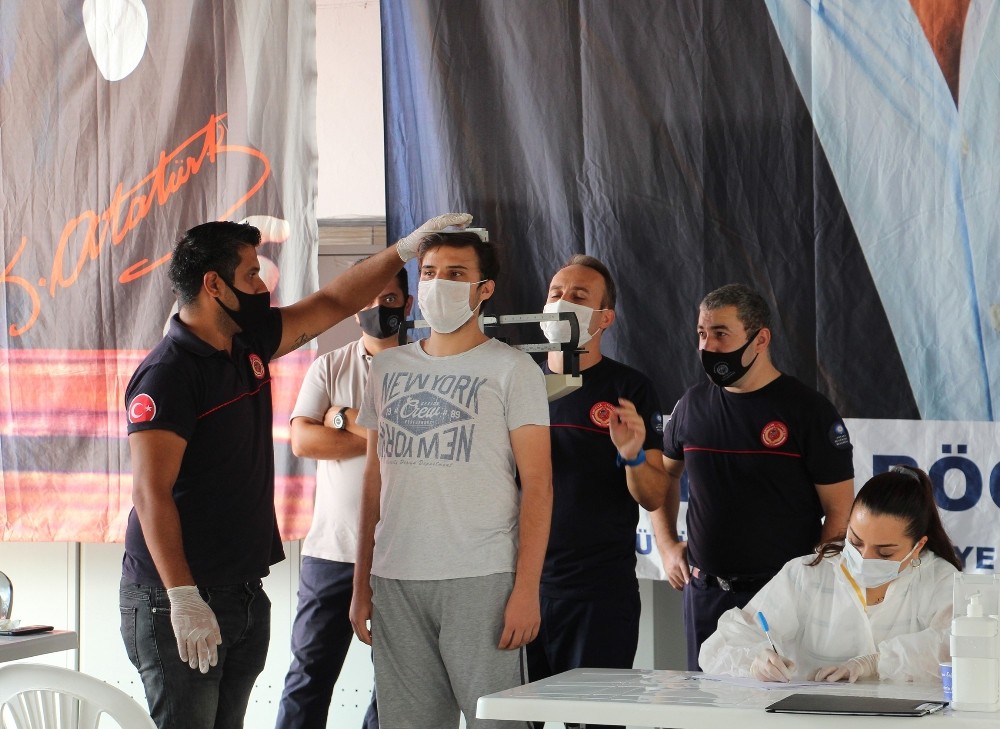Sabah mesai saati başlamasıyla yerleşkede sıraya giren adayların HES kodu sorgulandı ve ateşleri ölçülerek içeriye alındı. Boy ve kilo ölçümleri yapılan adayların daha sonra sosyal mesafe kuralına uygun olarak dizayn edilen masalarda başvuruları alındı. Her adayın ölçümlerinin yapılmasının ardından alan ekiplerce dezenfekte edildi.