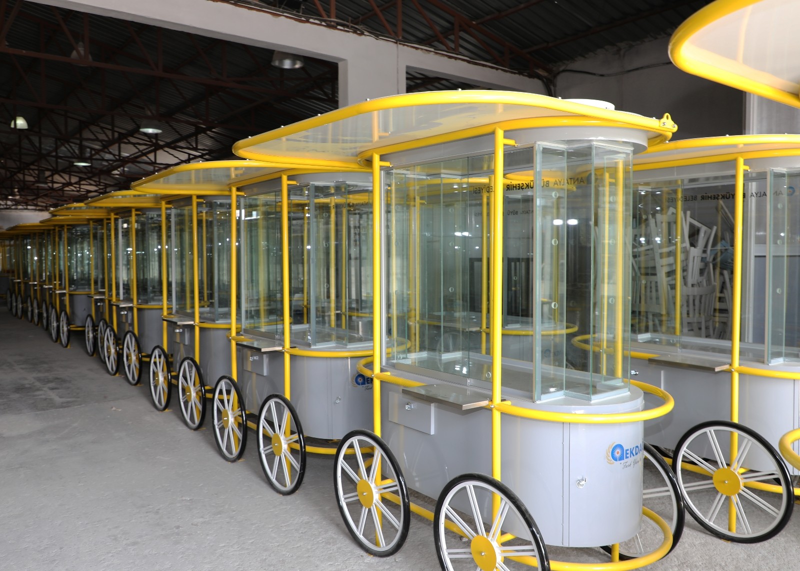 Antalya Büyükşehir Belediyesi, kent merkezindeki simit tezgahlarını yeniliyor. Simitçi esnafının daha hijyenik ve modern bir ortamda satış yapabilmeleri için kent estetiğine uygun yeni nesil simit tezgahları üretiliyor. Tezgahlar bayram sonrası esnafa dağıtılacak.