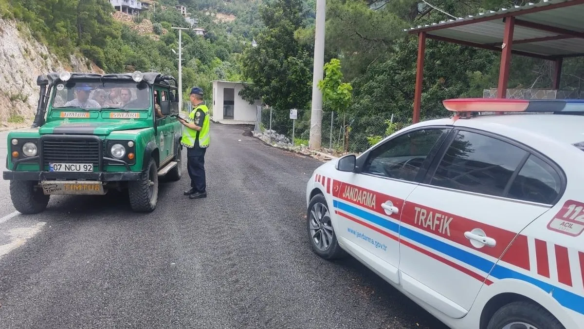 Alanya İlçe Jandarma Komutanlığı ekipleri turizm sezonunun başlamasıyla denetimlerini arttırdı. Ekipler Sapa dere Kanyon çevresinde faaliyet gösteren 18 safari aracını denetledi.