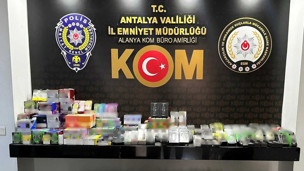 Alanya İlçe Emniyet Müdürlüğü Kaçakçılık ve Organize Suçlarla Mücadele Büro Amirliği ekiplerince Alanya'ya kaçak olarak gelen 700 adet Kaçak elektronik sigara, 1.311 adet olan kaçak emita ürünlerden parfüm, sprey, cep telefonu aksesuar ürünleri satılan işyerlerine yapılan operasyonlarda yakalanan ürünlere el konularak Emniyet Müdürlüğüne götürüldüler, 2 iş yeri sahibi hakkında yasal işlem başlatıldı.