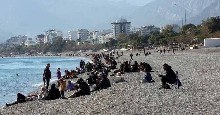 Hava Sıçaklığının 15, deniz suyu sıcaklığının 20 derece olarak olduğu kentte Konyaaltı Sahili'ndenki kalabalık manzara yazı aratmadı. Denize girmeyenler ise pırıl pırıl Akdeniz güneşi altında piknik yaptı.