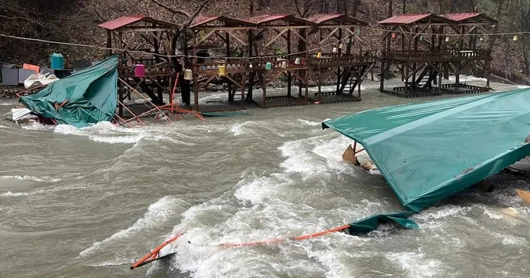 Çay kenarındaki işletmelerde hızlı bir hareketlilik var. Masa, sandalye ve taşınabilir ekipmanlar üst bölümlere çıkarılıyor. Bazı işletmeler günü kapatma kararı aldı. Yağış durdu gibi oluyor, sonra yeniden başlıyor. Su bir anda yükseliyor çünkü. Net tablo birkaç saat içinde ortaya çıkacak.