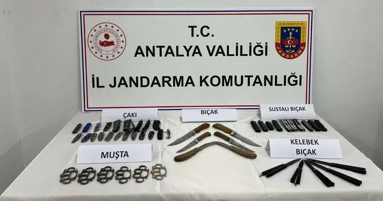Jandarma ekipleri yürütülen çalışmalar kapsamında, Gazipaşa ilçesinde okul çevrelerinde kesici ve delici alet satışı yapıldığı bilgisi üzerine harekete geçildi. Yapılan kontroller ve çalışmalarda F.D. isimli şüpheli şahıs yakalanırken, satışa sunduğu malzemeler üzerinde yapılan kontrolde çok sayıda suç unsuru ele geçirildi.