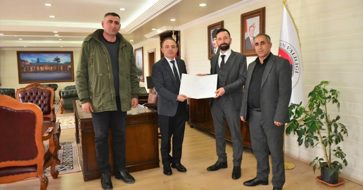 Ardahan Damızlık Koyun-Keçi Yetiştiricileri Birliği Başkanı Salman Gürbüz, Başkan Yardımcıları Murat Gündüz ve Erhan Şenel ile birlikte Ardahan Valisi Hüseyin Öner'i makamında ziyaret ederek toplanan yardım paralarının dekontunu teslim ettiler.