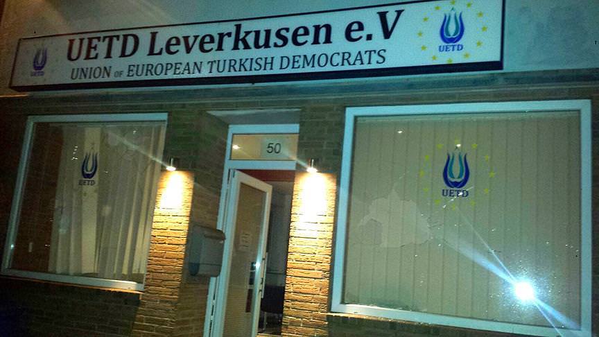 Avrupalı Türk Demokratlar Birliği'nin (UETD) Almanya'nın Leverkusen kentindeki şubesine taşlı saldırı yapıldı. Kimliği belirsiz kişilerce gerçekleştirilen saldırıda binanın pencere camları ve cam kapısı kırıldı. UETD Leverkusen Şubesi Başkanı Mehmet Emin Ünlü, şubelerine birkaç yüz metre mesafede polis karakolu bulunduğunu, daha önce iki kez benzer saldırılara uğramalarına rağmen faillerin yakalanıp cezalandırılmamasının saldırganları cesaretlendirmiş olabileceğini söyledi.