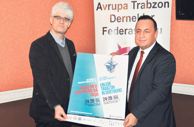 TRABZONLULAR, Almanya’nın Dortmund kentinde düzenlenecek olan “Her yönü ile Trabzon” etkinliği için gün saymaya başladı. Dortmund Fuar alanında gerçekleşecek etkinlik çarşamba günü başlayacak ve pazar gününe kadar devam edecek. Avrupa Trabzon Dernekler Federasyonu (ATDF) Başkan Salih Altınışık, ilk kez böylesine geniş kapsamlı bir organize gerçekleştirildiğini dile getirdi. Köln’de bir basın toplantısı düzenleyen Altınışık, “Ilki 2007 yılında Ankara’da düzenlenen ‘Her yönü ile Trabzon’ etkinliklerini bu kez Almanya’ya taşıyoruz. Kardeş kent Dortmund’un 11 bin metrekarelik fuar alanında Trabzon kentini tüm ayrıntıları ile tanıtacağız. Yüz bine yakın misafir ağırlamayı hedefliyoruz. Fuar alanında\r\ntüm bu etkinlik için 160 standımız yer alacak” dedi.\r\n\r\n