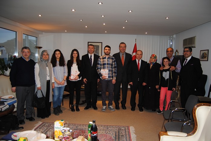 Frankfurt Başkonsolosluğu görev bölgesinde 2014-2015 öğretim yılında yüksek dereceyle liseden mezun olan iki başarılı öğrenci Büyükelçilik tarafından ödüllendirildi. Frankfurt-Nordend IGS Okulu’ndan 1.0 gibi yüksek dereceyle mezun olan Betül Kurt ile Dietzenbach Ernst Reuter Lisesi’nden aynı derece ile okulunu tamamlayan gazeteci Seyfi Alp’in oğlu Faruk Musa Alp için Frankfurt Başkonsolosluğu binasında tören düzenlendi. Törende Başkonsolos M. Mustafa Çelik, gençlere tablet bilgisayar ve teşekkür belgesi sundu. Çelik, “Başarınızla gurur duydum. Diğer gençlerimize güzel bir örnek oluşturdunuz” dedi. Ödül alan Betül Kurt, Goethe Üniversitesi Tıp Fakültesi’nde Faruk Musa Alp ise Darmstadt Teknik Üniversitesi Fizik bölümünde öğrenime başladı.\r\n\r\n