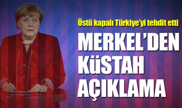 ALMANYA Başbakanı Angela Merkel, Cumhuriyet gazetesine yönelik operasyonu ve gazetecilerin göz altına alınmasını eleştirerek skandal bir açıklamaya imza attı\r\n\r\nHer zaman teröre ve teröristlere kucak açan Almanya, Cumhuriyet Gazetesi'ne yapılan operasyonla ilgili küstah bir açıklamada bulundu.\r\n\r\nFETÖ'cüleri ve devletin en mahrem sırlarını açıklamayı gazetecilik sanan vatan haini Can Dündar'ı ülkesinde barındıran Merkel FETÖ'nün kuklası olan Cumhuriyet Gazetesi üzerinden Türkiye'yi karalama kampanyasına başladı\r\n\r\nMerkel Türkiye'deki basın özgürlüğüne yönelik gelişmelerin kendisi ve Alman Hükümeti için alarm verici olduğunu kaydetti. Bu konuda yaşanan son üzücü durumun Cumhuriyet Gazetesi Genel Yayın Yönetmeni ve gazetecilere yönelik tutum olduğunu söyledi.\r\n\r\nTÜRKİYE'Yİ AB İLE TEHDİT ETTİ\r\n\r\nAlmanya'nın Türkiye Büyükelçisi Martin Erdmann'ın basın ve ifade özgürlüğünün kendileri için ne kadar önemli olduğunun altını çizmek için dün Cumhuriyet gazetesini ziyaret ettiğini de hatırlatan Merkel, "Tabi ki, böyle bir konu AB ile müzakerelerde merkezi bir rol oynuyor. Durum alarm verici" diye konuştu.