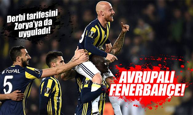 UEFA Avrupa Ligi A Grubu beşinci maçında Fenerbahçe evinde Zorya'yı konuk etti.\r\n\r\nFenerbahçe, UEFA Avrupa Ligi A Grubu 5. maçında sahasında Ukrayna temsilcisi Zorya Luhensk'i ağırladı.\r\n\r\nİlk yarısı 0-0 tamamlanan maçı Fenerbahçe ikinci yarıda bulduğu gollerle 2-0 kazandı.\r\n\r\nFenerbahçe'nin gollerini uzak mesafeden çektiği şutla 59'da Stoch ve ceza alanı içinden yaptığı şık kafa vuruşu ile 67'de Kjaer kaydetti. Bu sonuçla Fenerbahçe puanını 10 yaptı ve gruptan çıkmak için büyük bir avantajın sahibi oldu. Zorya ise 2 puanda kalarak turnuvaya veda etti.\r\n\r\nFenerbahçe grubun son maçında deplasmanda Feyenoord ile karşılaşacak. Zorya ise sahasında Manchester United'ı ağırlayacak.\r\nZorya'da Sobol, 90+2. dakikada kırmızı kart gördü.