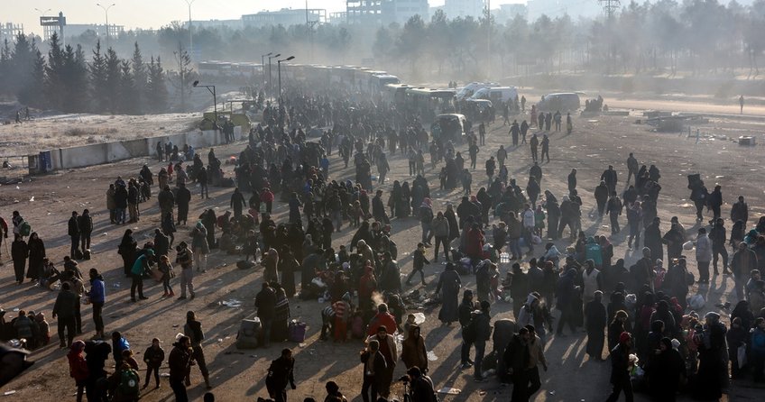 Halep'in doğu bölgesinde abluka altına alan siviller varılan anlaşmaların ardından muhaliflerin kontrolündeki Raşidin Bölgesi'ne getiriliyor.
