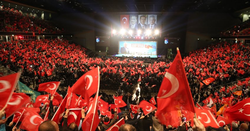 Sevdam millet, hayır zillet, ülkem sabret, geliyor rahmet, kararım 'EVET', dik dur eğilme bu millet seninle gibi dövizlerini taşıyan salondakiler, Başbakan Yıldırım'ın 'terör örgütlerinin inlerine gireceğiz' sözleri üzerine FETÖ ve PKK'ya yönelik yuhalama sesleri yükseldi, idamın getirilmesi istendi.