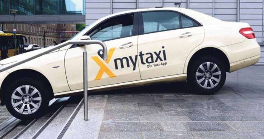 Başkent Berlin'de bir taksi soförü çıkısları karıstırınca kaza yaptı. Taksici bir anda girdigi yaya yolunda merdivenlerle karsılasınca duramadı, araç merdivenlere asılı kaldı. BERLİN