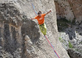 Festival kapsamında Slackline Türkiye Ekibi'nin daveti üzerine Levent Vadisi'ne gelen 33 yaşındaki Volery, kanyonda dünyadaki en uzun gevşek ip hattı üzerinde dünya rekoru kırma denemesi yaptı.