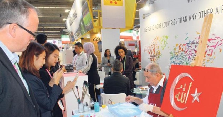 150 ülkeden 3 bin 500 standın yer aldıgı fuarın Türkiye standında konuklara lokum, baklava, simit, Türk kahvesi ve Türk çayı ikram edildi. Almanya'da yasayan Orhan Erdogan ve Mehmet Tanrıverdi ise ebru ve hat sanatını tanıttı.