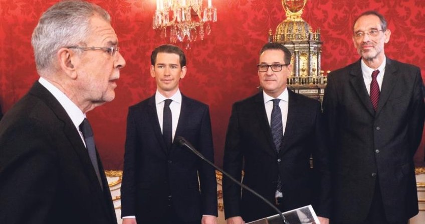 Aşırı sağcı koalisyonu oluşturan Avusturya Halk Partisi (ÖVP) ve Özgürlük Partisi (FPÖ), Hofburg Sarayı'nda düzenlenen yemin töreniyle resmen göreve basladı. Hükümet üyeleri, Cumhurbaşkanı Alexander Van der Bellen tarafından kabul edildi.