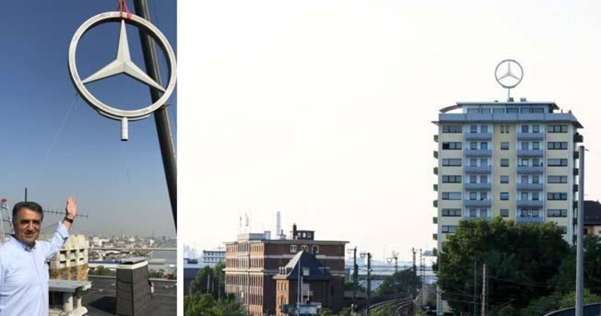 Kentin Rheinvorland Caddesi üzerindeki binanın çatısından sökülen Mercedes'in yıldızı artık Ladenburg'daki Dr. Carl Benz Otomobil Müzesi'nde sergilenecek. Suntat'ın 8x5 metre ebadındaki dev logosu ise 20 yıllığına kiralanan alana önümüzdeki günlerde asılacak.