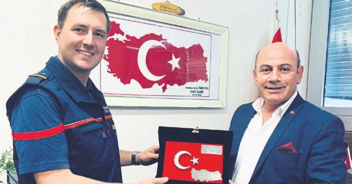 OLTEN'DE bulunan Ata Garage isimli tamirhanede çıkan yangında Türk bayrağını yanmaktan kurtaran itfaiyeci Gaumann Thomas'a plaketi İsviçre Türk Toplumu (İTT) verdi. Yangında Thomas bayrağı alıp, İtfaiye Başçavuşu Samet Şahin'e teslim etmişti. Plaket töreninde konuşan İsviçreli itfaiyeci Thomas, "Türklerin takdiri beni mutlu etti" dedi.
