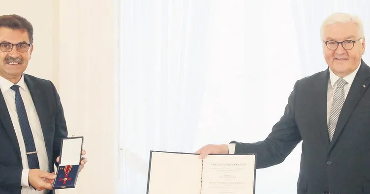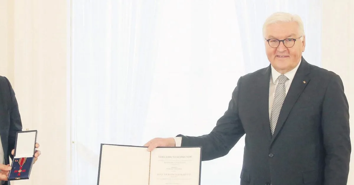 ALMANYA Cumhurbaşkanı Frank Walter Steinmeier, yaptıkları başarılı çalışmalar nedeniyle üç Türk'e liyakat nişanı verdi. Steinmeier, ödülü takdim konuşmasında, "Bu sözde misafir işçiler, onların çocukları, torunları ve torunlarının torunları, ülkemizi değiştirdi ve onlarsız Almanya artık hayal bile edilemez" dedi. Steinmeier, Prof. Dr. Yasemin Karakaşoğlu, Derviş Hızarcı ve Turgay Tahtabaş'a liyakat nişanı sundu.