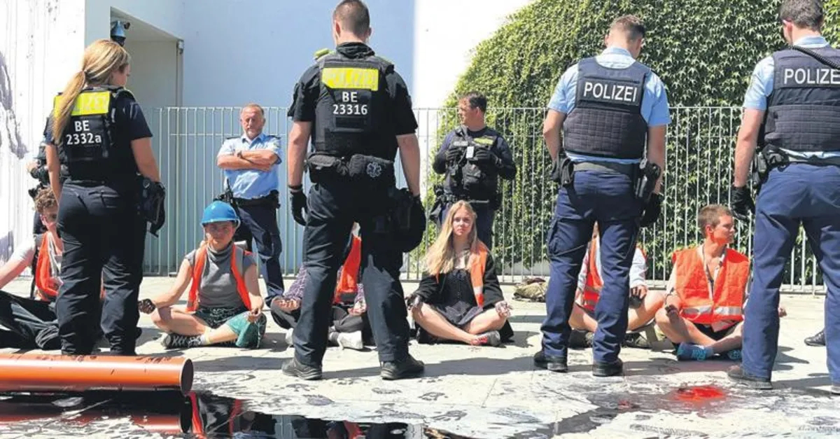 ALMANYA'DA "Letzte Generation" (Son Nesil) adlı çevreci grup, hükümetin Kuzey Denizi'nde petrol arama planlarını protesto ederek Başbakanlık binasının dış cephesinin bir bölümünü siyah renge boyadı. Üzerinde "Kuzey Denizi petrolüne hayır" ve "Petrol aramak yerine tasarruf edin" yazan pankartlar taşıyan göstericiler, güvenlik önlemleri alan polisler tarafından gözaltına alındı.