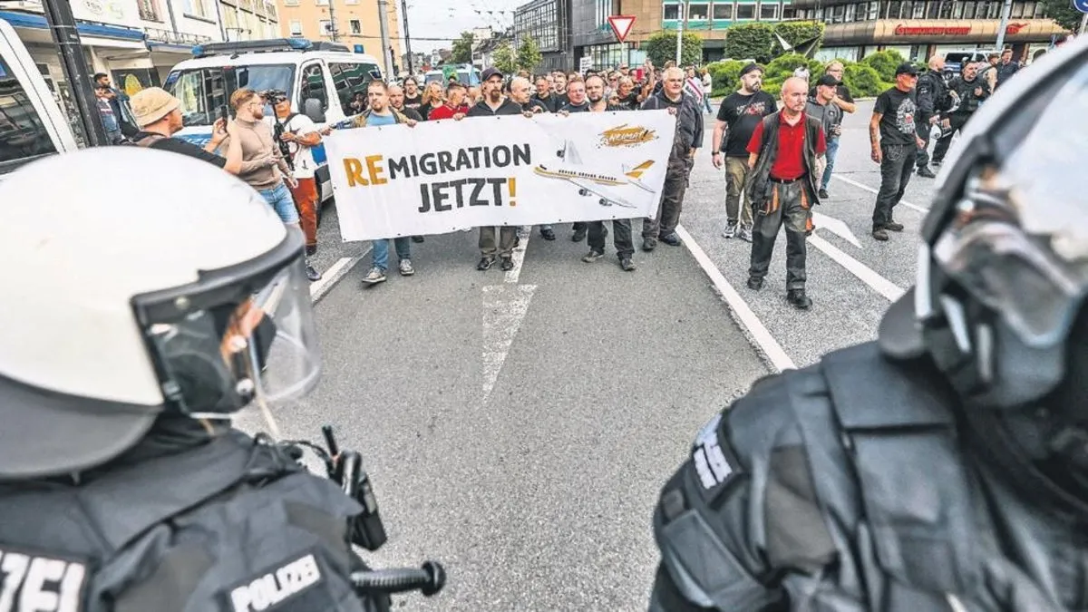 Irkçı sloganlar nedeniyle polis ırkçıların yürüyüşünü dağıttı ve soruşturma başlattı. Buna rağmen yaklaşık 100 kişi yeniden biraraya gelerek ırkçı sloganlarına devam etti ve Hitler selamı verdi. "Almanya Almanlarındır, Yabancılar Dışarı" diye bağıran ırkçılar daha sonra dağıldı. Polis iki kişiyi bölgeden uzaklaştırdı.