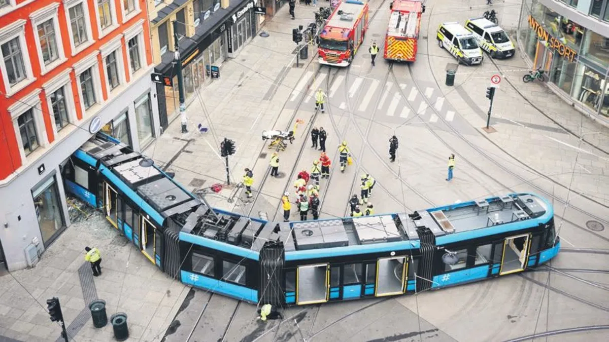 Norveç'in başkenti Oslo'da raydan çıkan bir tramvay, mağazaya çarptı. Kazada vatman da dahil olmak üzere dört kişi yaralandı. Polis, olay anında tramvayda 20 kişinin bulunduğunu açıkladı. Oslo'nun en eski caddelerinden biri olan Storgata'daki kaza nedeniyle cadde büyük ölçüde trafiğe kapatıldı. Kazanın sebebi ise henüz belirlenemedi. OSLO