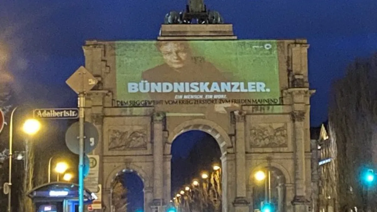 Almanya'nın Münih kentinde bulunan 1843-1850 yılları arasında inşa edilen Zafer Takı'na Yeşiller Partisi Başbakan Adayı Robert Habeck'in seçim afişi projeksiyonla yansıtıldı. Yansıtılan afişte, "Birlik Başbakanı-Bir İnsan. Bir Söz" ifadeleri yer aldı. Tarihi eserlerde seçim propagandası yapmanın yasak olduğu belirtildi ve soruşturma başlatıldığı açıklandı.