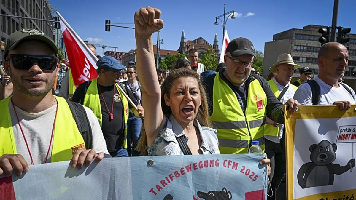 Başkent Berlin'de de sendikalar tarafından düzenlenen yürüyüşte binlerce kişi, Karl-Marx Allee Caddesi'nden 1 Mayıs kutlamalarının yapıldığı Berlin Belediye binası önüne kadar yürüdü.