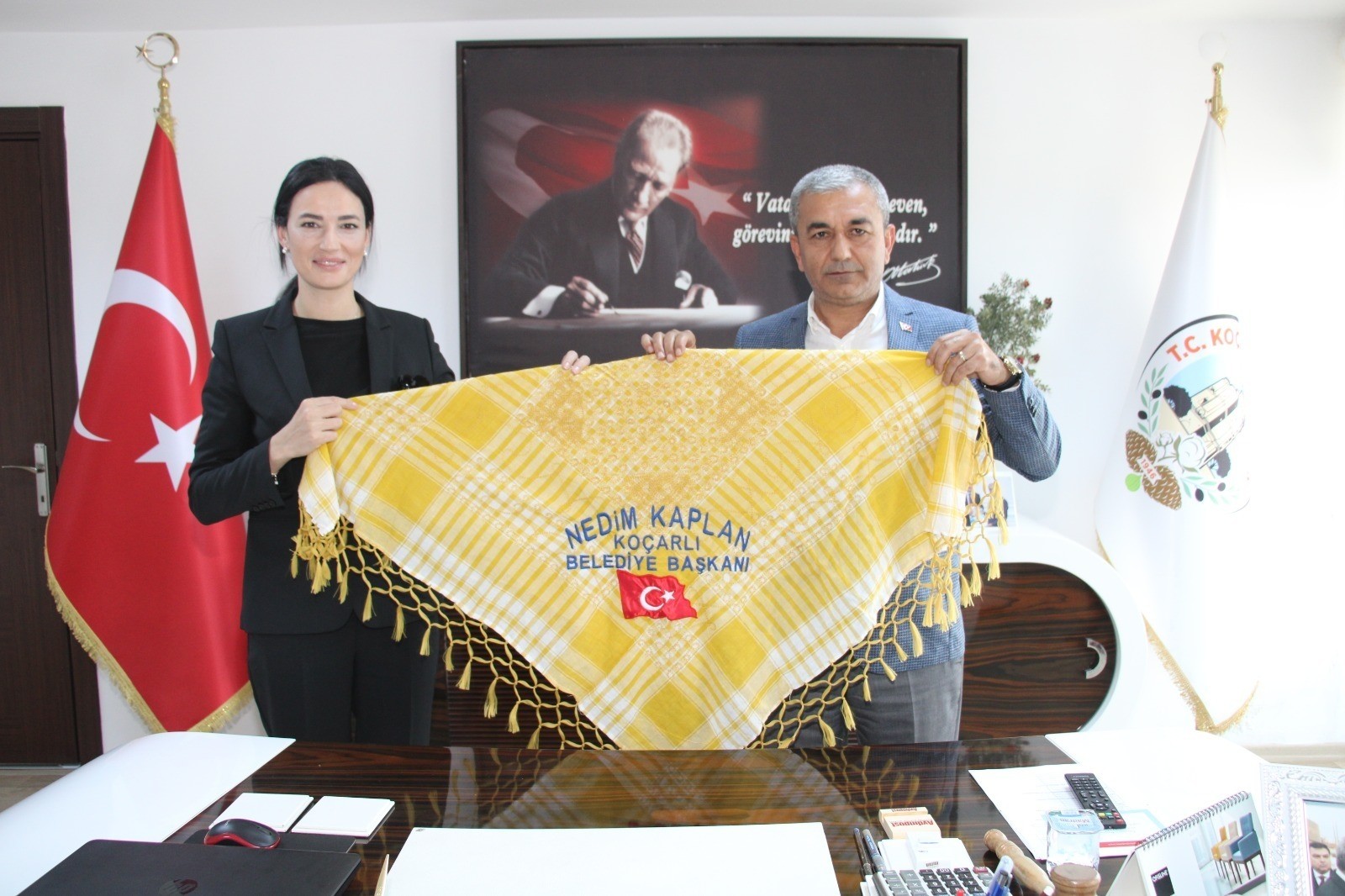 Yapılan karşılıklı fikir alışverişi ve istişarelerin ardından Başkan Kaplan, MKYK Üyesi Sarıbaş’a efe poşusu ile Koçarlı’nın yöresel ürünlerinden oluşan hediye takdim ederek ziyareti nedeniyle teşekkürlerini iletti.
