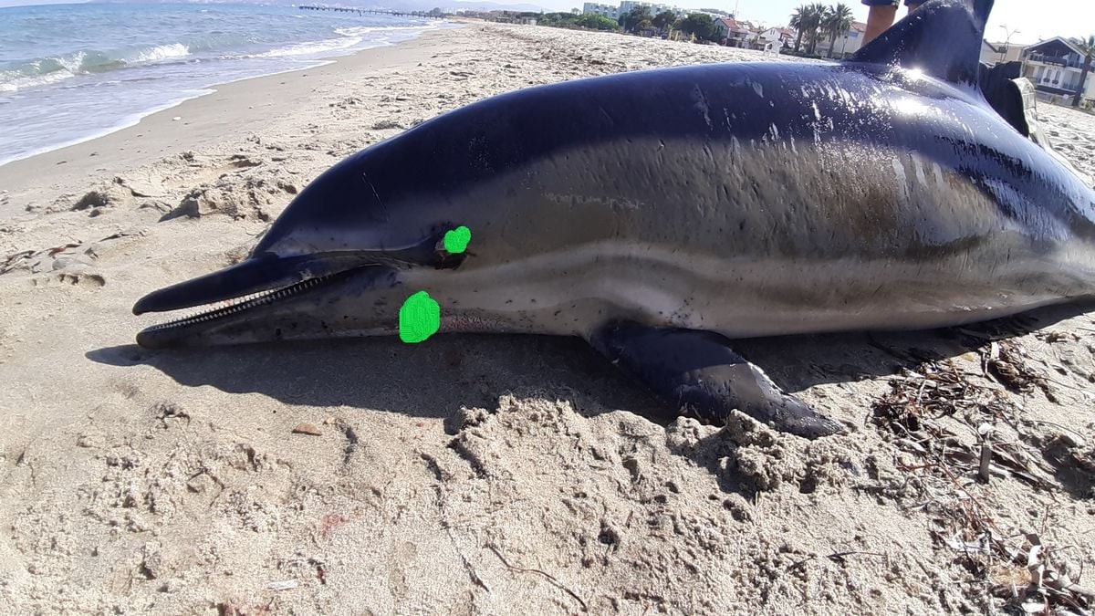 Aydın’ın Kuşadası ilçesinde, Kuşadası Sahil Güvenlik Komutanlığı tarafından, sahil sitelerine ölü bir yunusun kıyıya vurduğu ihbarı yapıldı. Ete Sitesi plajına vuran yunusa yapılan incelemede, Tırtak (Delphinus delphis) türü olduğunu anlaşıldı.