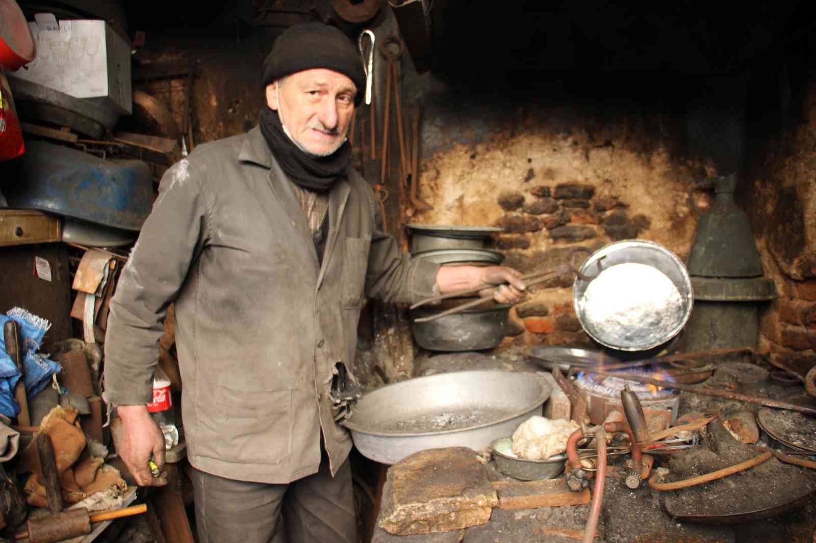 Aydın’da kalaycılığın temsilcilerinden 72 yaşındaki Aydın Alkış ata yadigarı mesleğini ayakta tutmaya çalışıyor.