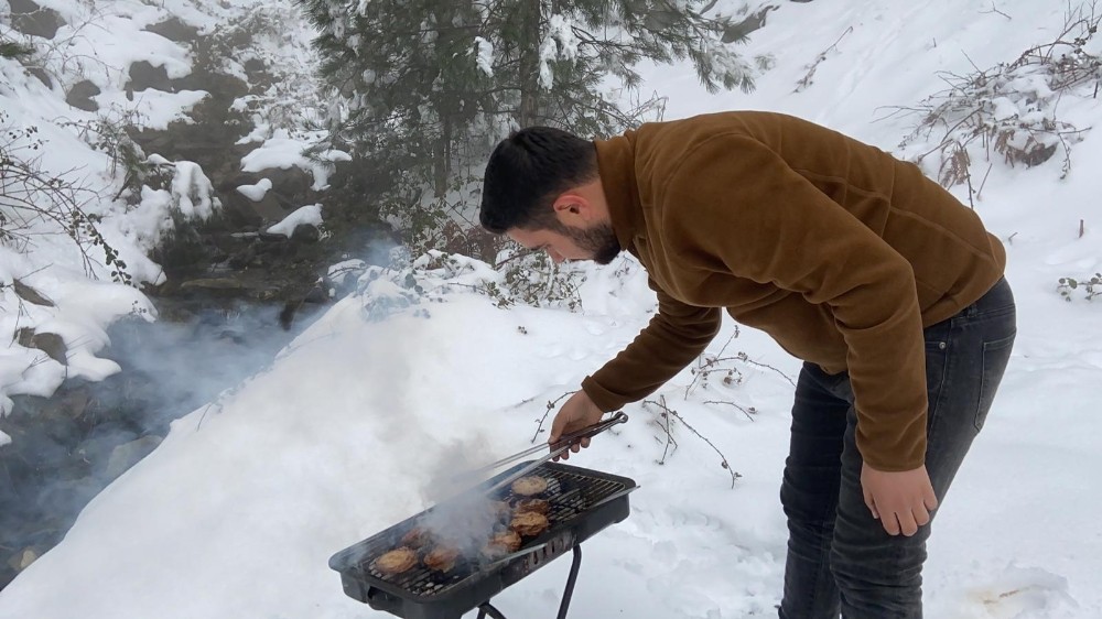 Balıkesir’de kar üzerinde sucuk ekmek keyfinin yerini kuzu kokoreç aldı.Kış aylarında Balıkesirlilerin tercihi bir zamanlar bölgenin en yüksek dağlarından olan Sındırgı Ulus Dağı’nda kar üzerinde sucuk ekmek iken, onun yerini kokoreç almaya başladı. Pandemi sürecinde de Ulus ve Kertil dağlarının eşsiz doğasında karın keyfini yaşayan vatandaşlar, Balıkesir’in eşsiz lezzeti süt kuzu kokorecin tadını çıkarıyor.Bigadiç’ten zirvede kokoreç yapmak için Sındırgı Ulus Dağı’na gelen ve zorlu bir mücadele sonrasında zirveye ulaşan Davut Akça, “Ulus Dağı’nın...