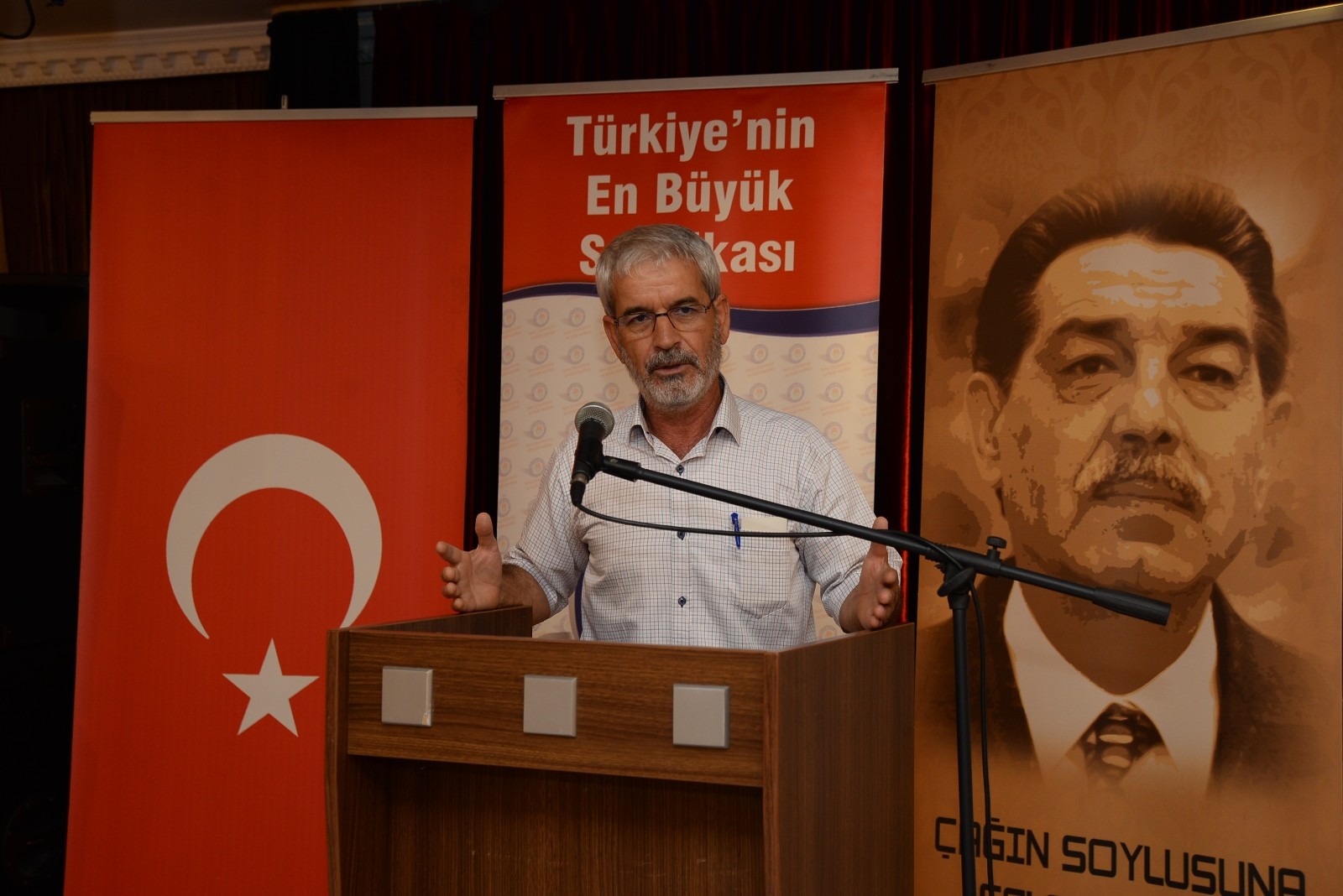 Ödül töreni Şube Başkanı Mehmet Çabuk’un açılış ve selamlama konuşması ile başladı. Mehmet Çabuk konuşmasında şunları söyledi ; “ Pandemi nedeniyle ertelenen, aslında 2019-2020 Eğitim-Öğretim yılı başından beri devam eden, il genelinde 700 öğrencinin katılımıyla gerçekleştirdiğimiz projemizin bu yıl 3.sünü düzenlemiş olduk. Önümüzdeki yıllarda bu sayının kartopu gibi büyüyerek artacağını ümit ediyorum. Amacımız medeniyet değerlerine bağlı inançlı, ülkesini, bayrağını, milletini seven nesiller yetiştirme yolunda katkı sunmaktır. Toplumumuzda son günlerde yaşadığımız çocuk katliamları, cinayetler gibi vahşetler, iyi ve vicdanlı insan yetiştirmenin önemini bir kez daha gösterdi. Bu katliamları yapan vicdansızlar da bir zamanlar masum bir çocuk iken, ne oldu da bu masum çocuk büyüyünce bir canavara dönüştü? Bunu iyi irdelememiz lazım. Bir an önce tedbirini almamız lazım. Gençler! Sizler, bizim için umutsunuz. Kendi medeniyet tarihimizden hareketle kurulacak yeni medeniyet hamlemizin Fatihlerisiniz . Eğer, siz hem şahsi hayatınızda hem de medeniyet çabamızda başarılı olmak istiyorsanız, bıkmadan usanmadan uğraşı verin. Hem manevi ilimlerde hem de maddi ilimlerde bir adım önde olun. Türkiye’mizin medeniyet davası için öncü olacak nesiller sizin içinizden çıkacak; inanın. Ümmetin toparlanışı için, mazlum insanlığa el uzatmak için, bir ayağınızı bu coğrafyaya sabitleyin, diğer ayağınızla dünyayı dolaşın. Eğer bunu becerebilirsek, bugün zor görünen şeyin yarın çok kolay olacağını da görürsünüz” dedi. Mehmet Çabuk konuşmasının sonunda katılımcılara, emeği geçen İlçe Başkan ve yönetim kurullarına, koordinatör öğretmenlere, değerlendirme yapan jüri üyelerine ve dereceye giren öğrencilerin annelerine ve babalarına böyle evlatlar yetiştirdikleri için teşekkür etti.