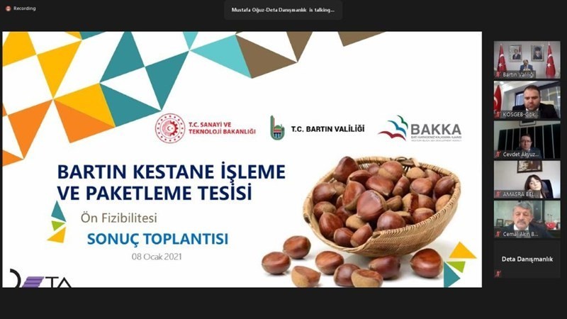 Batı Karadeniz Kalkınma Ajansı(BAKKA) tarafından 'Bartın Kestane İşleme ve Paketleme Tesisi Ön Fizibilite Çalışması' adı altında zoom üzerinden kapanış toplantısı düzenlendi.Bartın Valisi Sinan Güner’in talimatları doğrultusunda Batı Karadeniz Kalkınma Ajansı(BAKKA) iş birliği ile 'Bartın Kestane İşleme ve Paketleme Tesisi Ön Fizibilite Çalışması' adı altında zoom üzerinden kapanış toplantısı yapıldı.Toplantıya, kamu kurum ve kuruluşları, meslek odaları, sivil toplum örgütleri ve sanayi kuruluşları katıldı.Bartın Valisi Sinan Güner Bartının kestane üretimi için uygun iklime sahip olduğunu söyleyerek, “Bartın...