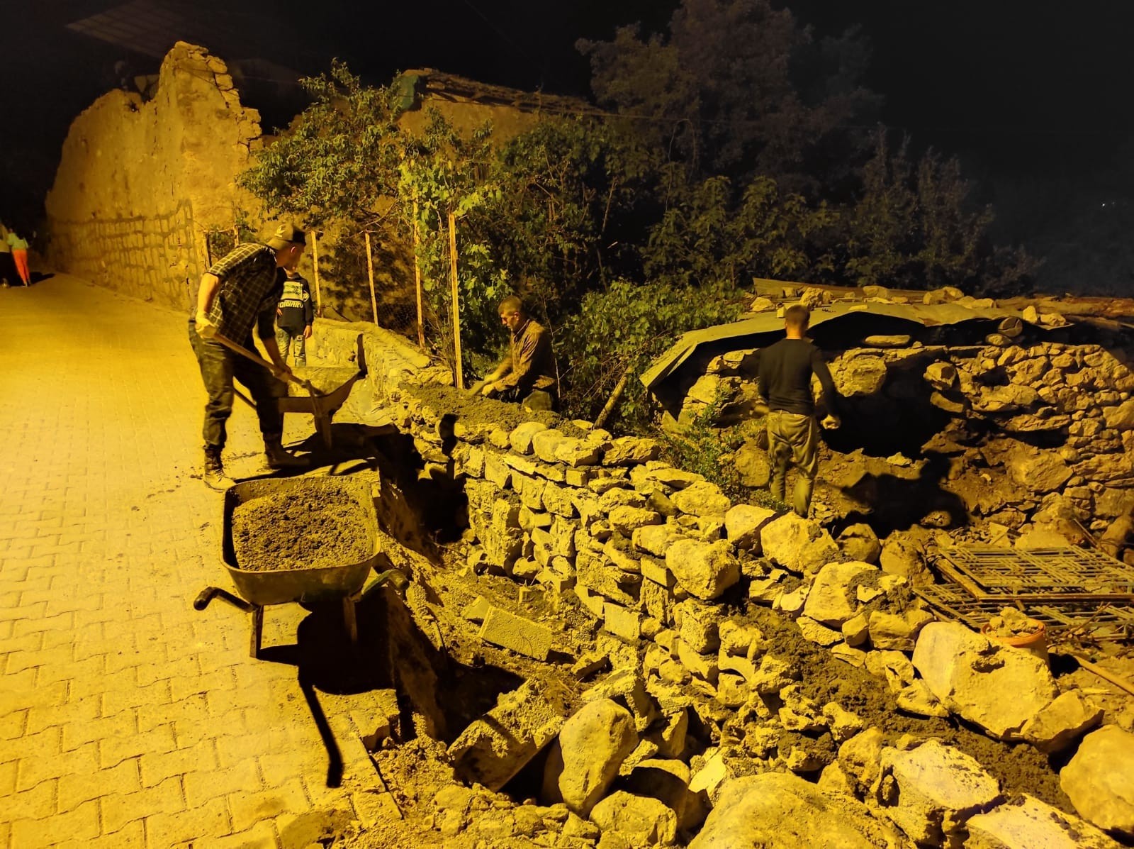 Batman’da Ramazan ayında havaların ısınmasıyla oruç tutmakta zorluk yaşayan taş duvar ustaları, gündüz oruç tutarak geceleri duvar örüyor.
