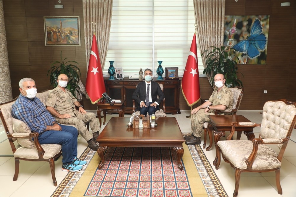 Van Jandarma Asayiş Kolordu Komutanı Tümgeneral Hacı İlbaş’tan Vali Oktay Çağatay’a veda ziyareti gerçekleştirdi. Vali Oktay Çağatay, 28 Temmuz 2020 tarihli Resmi Gazete’de yayınlanan kararname ile Van Jandarma Asayiş Kolordu Komutanı iken emekliliğe sevk edilen Tümgeneral Hacı İlbaş’ı makamında ağırladı. Bölgede, terörle mücadele başta olmak üzere, asayiş ve güvenlik faaliyetlerinde beraber çalışmaktan memnun olduğunu söyleyen Vali Oktay Çağatay, Tümgeneral Hacı İlbaş’a, bundan sonraki hayatında başta ailesi olmak üzere sevdikleriyle mutlu, sağlıklı ve huzurlu emeklilik hayatı geçirmesi temennisinde bulundu. Tümgeneral Hacı İlbaş da, ilimizin ve bölgemizin huzur ve güvenliğini sağlamak ve bu durumu devam ettirmek için birlikte çalışmaktan duyduğu mutluluğu dile getirdi ve iyi dilek ve temennilerinden dolayı Vali Oktay Çağatay’a teşekkürlerini iletti.