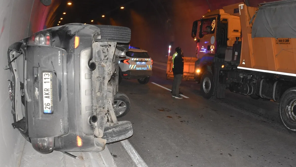 Kaza, saat 14.00 sıralarında kent merkezinde bulunan 8 Ağustos Tüneli'nde meydana geldi. Karayolları Tünel Şefliği ekipleri tünel içerisindeki kameralar üzerinde bakım çalışması yaptığı sırada, sürücülerinin isimleri henüz öğrenilemeyen 26 AKR 113 plakalı otomobil, aynı yönde ilerleyen 12 AAG 700 plakalı hafif ticari araca çarptı.