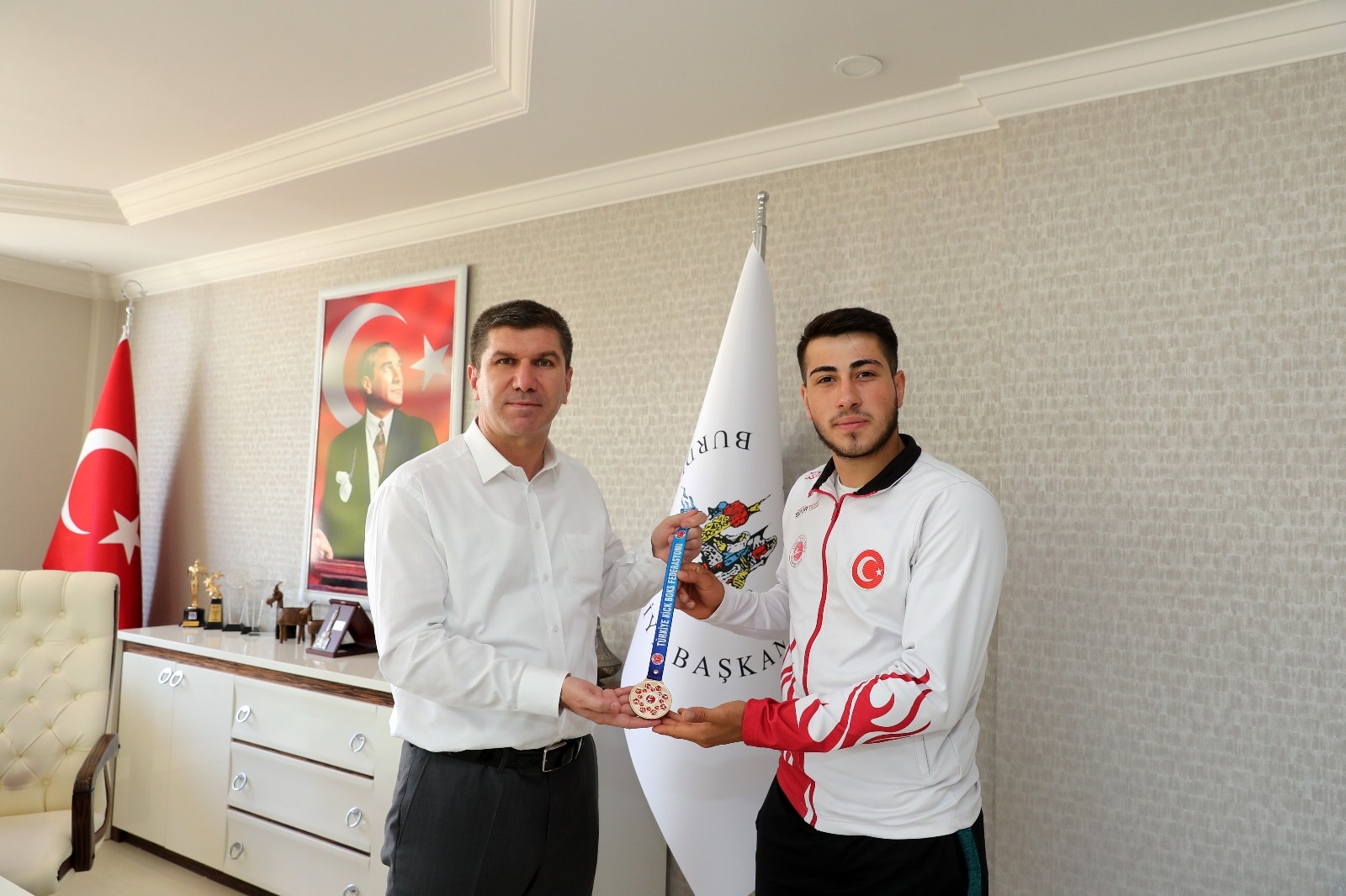 Başkan Ercengiz’i ziyaret eden Davut Kaya “7 yıldır Kick Boks sporu ile uğraşıyorum. 3 yıldır da milli takımda yarışıyorum. 1-7 Temmuz’da Şırnak’ta düzenlenecek milli takım seçmelerine katılmaya hak kazanmıştım ve Burdur’umuza Türkiye şampiyonu olarak döndüm. İnşallah İtalya’da 13-23 Ekim tarihleri arasında düzenlenecek Dünya Şampiyonası’nda ülkemizi ve Burdur’umuzu temsil ederek ödüllerle geri dönmek istiyorum. Bugünde bu sevincimi bizlere her zaman destek olan Belediye Başkanımız Ali Orkun Ercengiz’e bir kez daha teşekkür etmek istiyorum” dedi.
