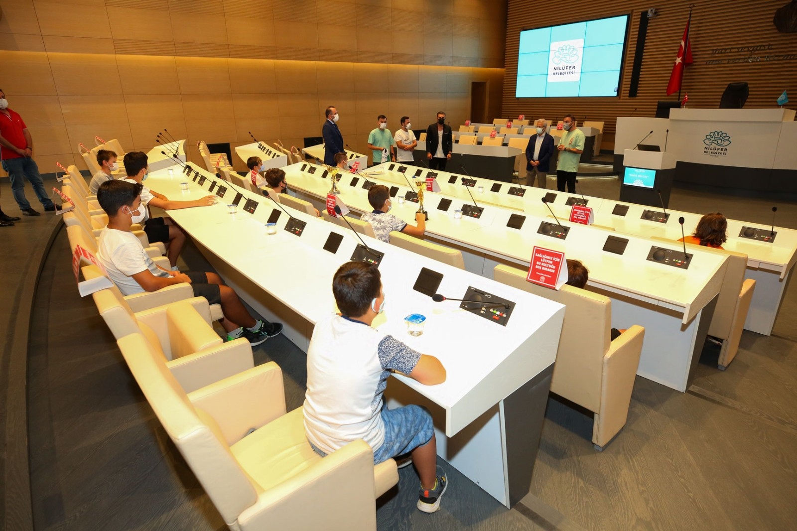 Başkan Turgay Erdem, Nilüfer Belediyespor Sercan Yıldırım Futbol Akademi’nin başarılı sporcularına, günün anısına çeşitli armağanlar verdi.