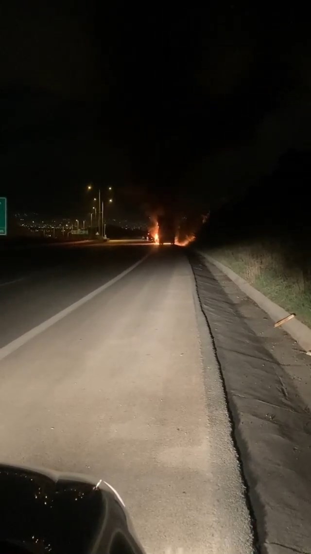 Bursa-İzmir-İstanbul otoyolu üzerinde meydana gelen yangında bir kamyon küle döndü.