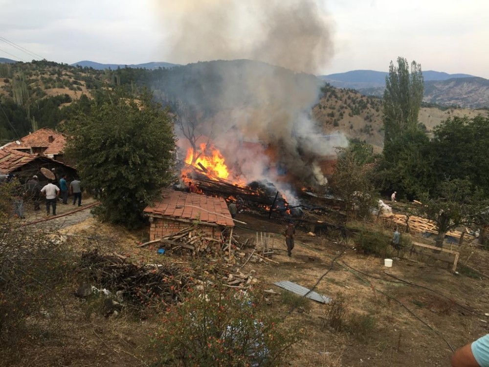 Bayat’ta 3 ev ve 1 samanlık yandı