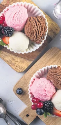 İster ara öğün ister yemeklerden sonra tatlı olarak tüketin, dondurmada seçeneğiniz çok. Meyvelisi, sütlüsü, çikolatalısı, vanilyalısı, karamellisi... Bununla da bitmiyor. Sevdiğiniz bir tatlının yanında enfes bir ikili oluşturarak tatlıya ayrı bir lezzet katıyor. Dondurmanın lezzeti ve keyfi kadar sunumu da adeta bir şölen. Hem sofraları süslüyor, renklendiriyor hem insanın ruhuna hitap ediyor. Çeşit çeşit rengarenk dondurmaları ister şık bir porselen tabağına top top ister kare kare keserek isterseniz de cam bir kasede taze meyvelerle servis edin sofranızın daha da renkleneceği garanti.