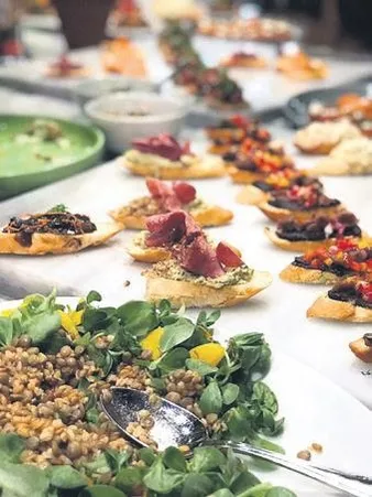 - Çok fazla yemek var. Yaklaşık 40 çeşit ürün servis ediliyor. Dünya mutfaklarından örnekler de var. Ama genellikle Los Angeles ahalisinin alışkın olduğu ve bildiği lezzetler servis ediliyor. İtalyan, Fransız ve Japon mutfağı üzerinden ilerliyor her şey. Avrupa mutfağı ekseninde bir mutfak oluşturuluyor. Genelde klasik olarak pot pie (tavuk böreği), agnolotti (Piemonte bölgesine ait, ravioliden küçük, kapalı bir tür makarna), somonlu pizza, ton balığı tartar ve patates-havyar servis ediliyor ve her sene ana yemekler, aperatifler ve tatlılar mutlaka değişiyor.