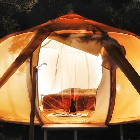 Çadırları lüks ve konfor sağlayan türden. Yine de doğada, çadırda olmaktan çekinenler için oda seçenekleri de mevcut