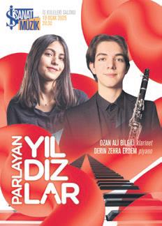 İş Sanat'ın gelecek vadeden yeteneklere destek olmayı amaçlayan Parlayan Yıldızlar konserleri iki genç sanatçı ile devam ediyor. 19 Ocak Pazartesi akşamı düzenlenecek konserde Ozan Ali Bilgili (klarinet) ve Derin Zehra Erdem (piyano) sahnede olacak. Bilgili, Saint-Saëns'ın Klarinet Sonatı ile Messager'nin Solo de Concours'unu seslendirecek. Erdem'in repertuvarında ise Bach, Mendelssohn ve Rachmaninoff'un eserleri yer alacak.