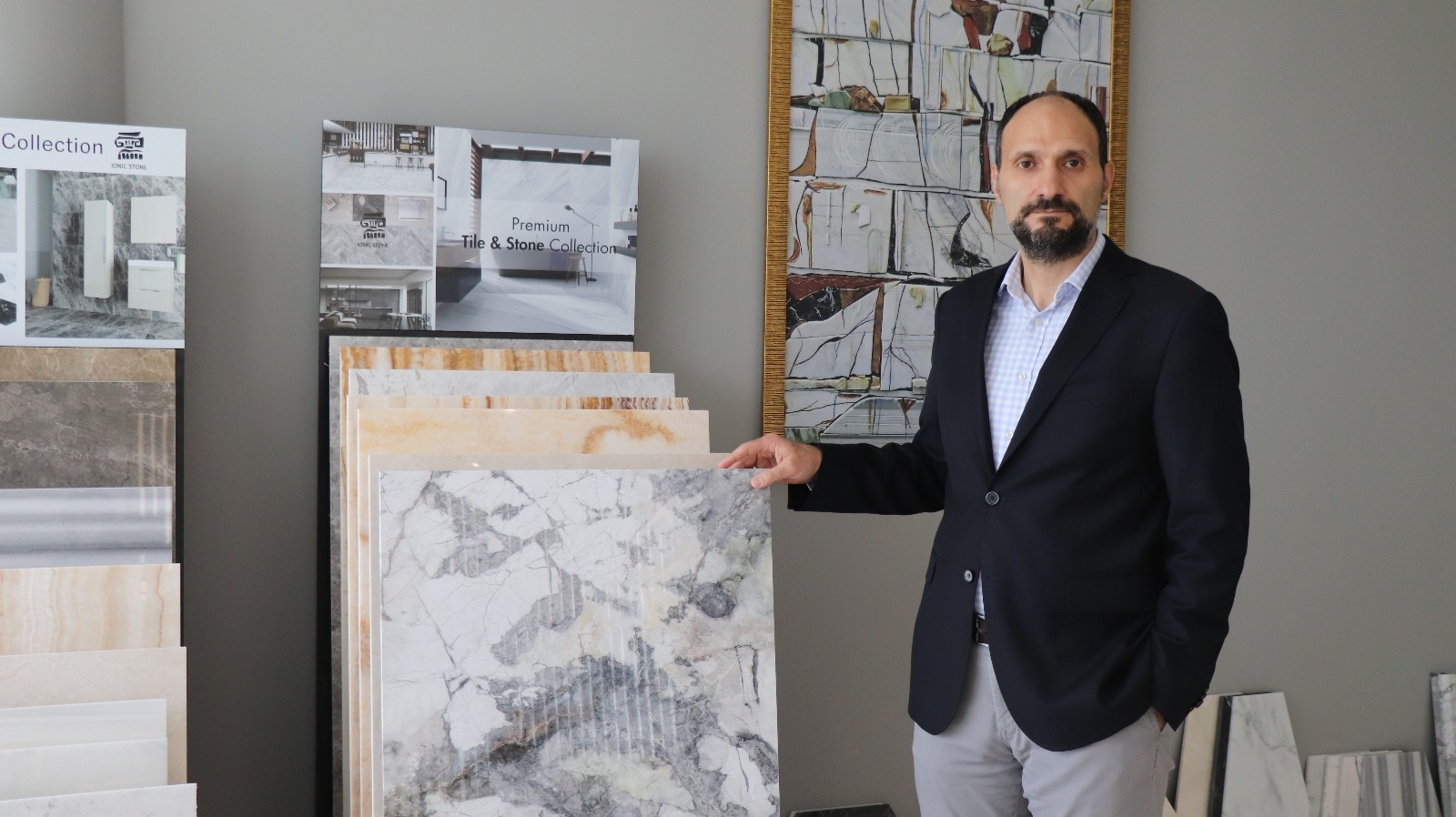"Dünya patentlerine sahip bu hat vasıtasıyla ürettiğimiz ürünler başkası tarafından üretilmediğinden dolayı bu hat sayesinde başarılı olduğumuzu düşünüyoruz. Bu gördüğünüz taş bu zamana kadar ince kesilip fayans haline getirilememiş. Biz bunu kendi Ar-Ge merkezinde yaptığımız dünya patentli olan sistemimiz sayesinde ince bir şekilde büyük ebatlarda keserek fayans haline getirip tamamen ihraç ediyoruz."