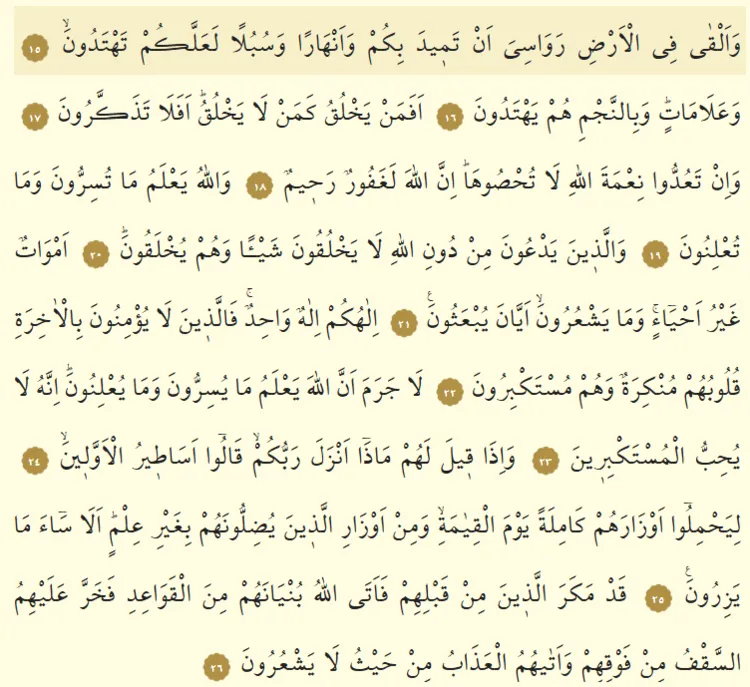 - O, sizi sarsmaması için yere sağlam dağlar yerleştirdi, ırmaklar ve yollar açtı ki gideceğiniz yere ulaşabilesiniz.