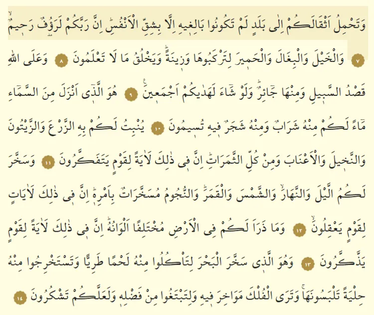 - Bu hayvanlar ancak kendinizi fazlasıyla yorarak ulaşabileceğiniz bir beldeye yüklerinizi taşır. Kuşkusuz rabbiniz çok şefkatli, çok merhametlidir.