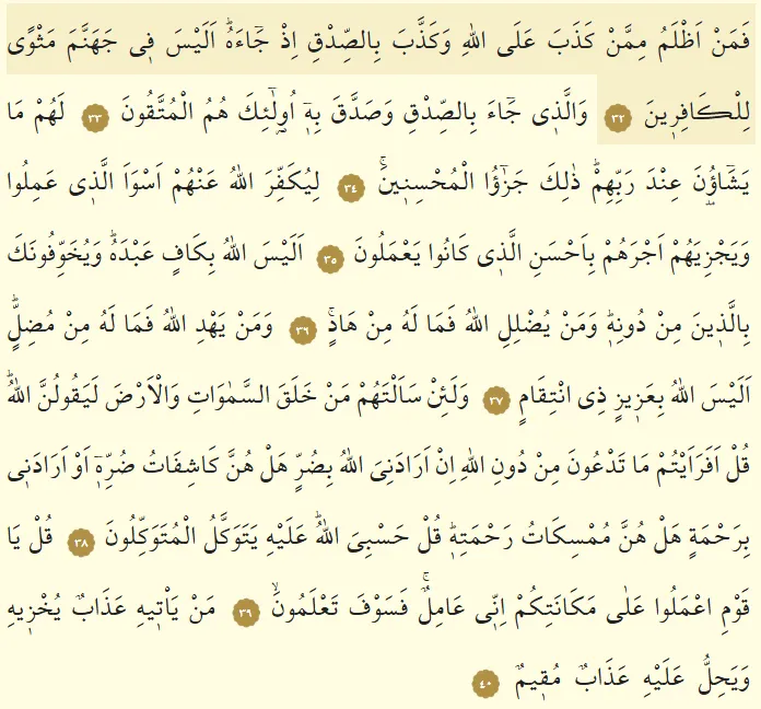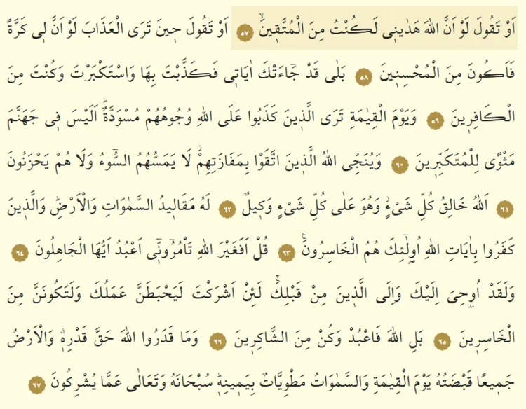Zümer Suresi Arapça Yazılışı